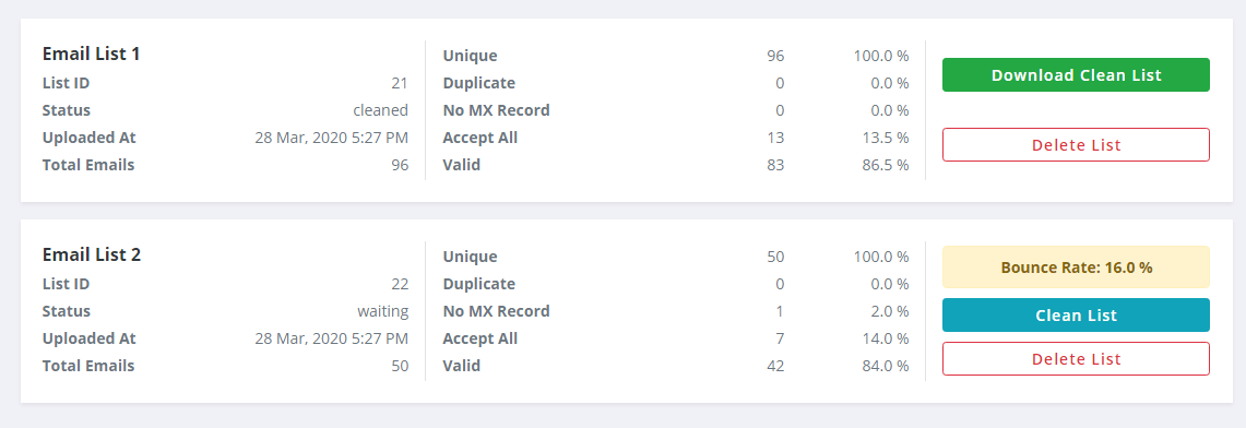 After analyzing your subscriber list, it will estimate how many emails might bounce if you were to send content to everyone on your list. Register here to analyze your list. This means that it will tell you if the email is likely to bounce, or if you actually have the right email. Best email list cleaning service. While you test email addresses, you can also use the free list analysis tool as a bounce checker.