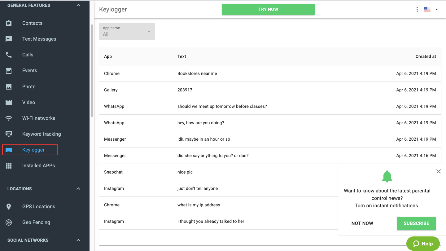 Spyine hails itself as the best keylogger android app for parental and employee monitoring.